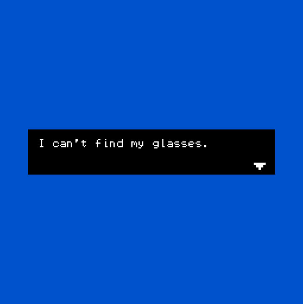 “I’ve checked the nightstand, the kitchen, the bathroom, the bag of cat food, the half-finished milk tea, the hallway of a thousand doors, outer space, and the weed garden, but I still can’t find them anywhere!”A short Bitsy game about trying to find your glasses inspired by my inability to ever find mine.Skills: game design, writing, dialogue, pixel art, Bitsy